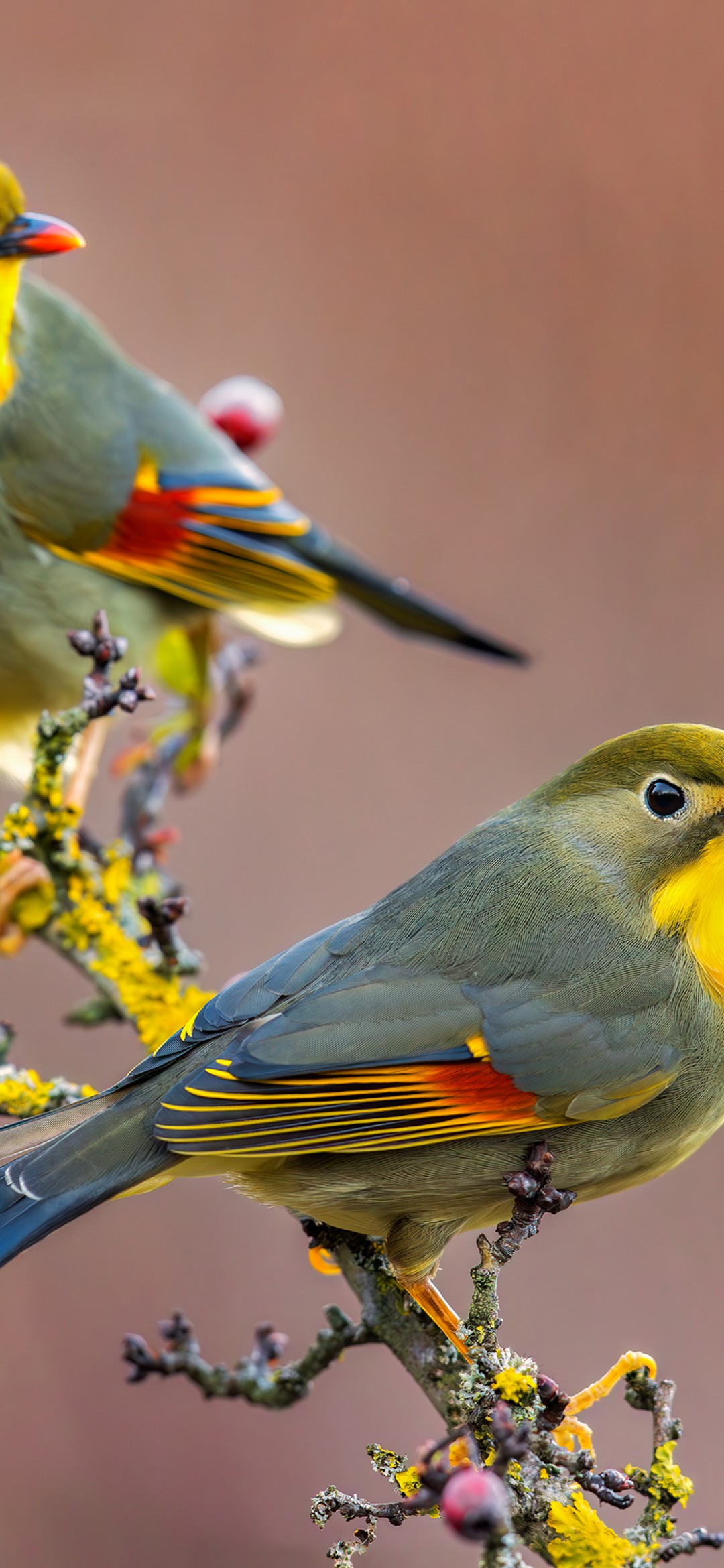 Colorful Japanese Nightingale Birds Wallpaper - 1080x2340