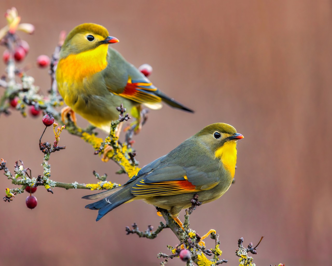 Colorful Japanese Nightingale Birds Wallpaper - 1280x1024