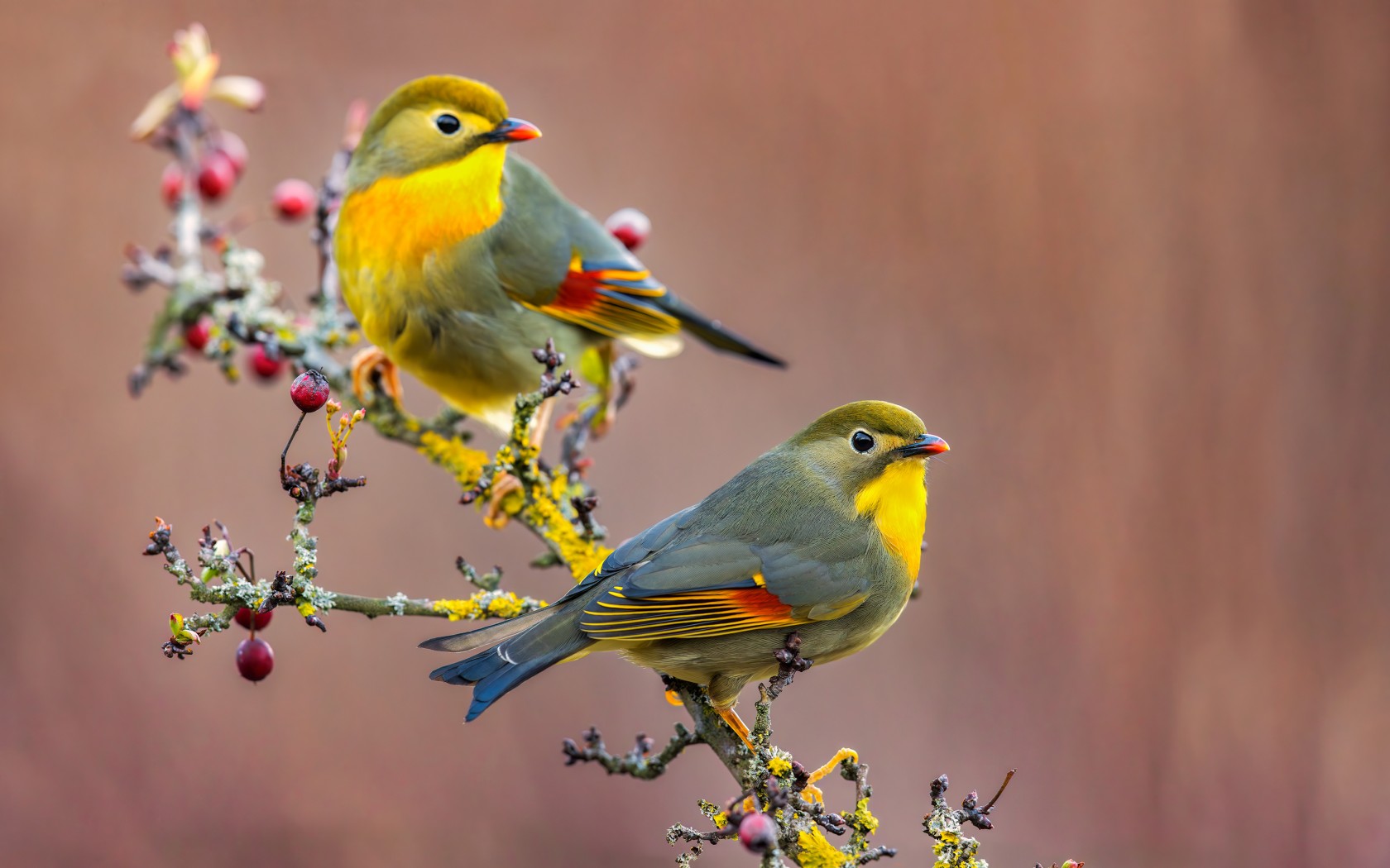 Colorful Japanese Nightingale Birds Wallpaper - 1680x1050