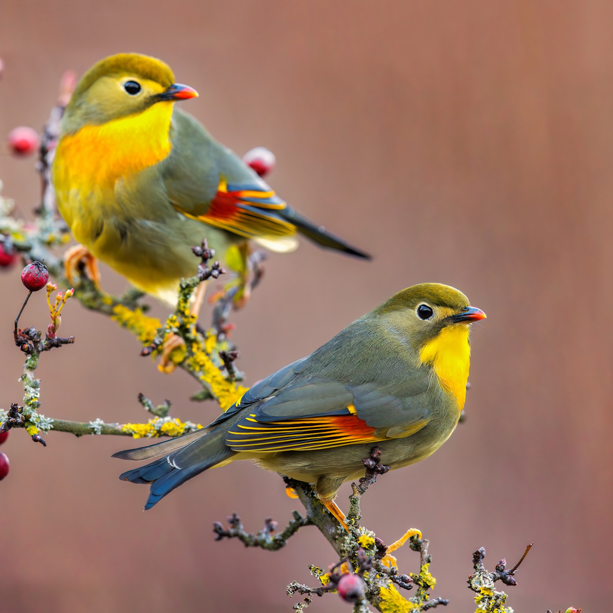 Colorful Japanese Nightingale Birds Wallpaper - 2048x2048