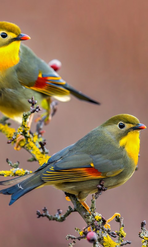 Colorful Japanese Nightingale Birds Wallpaper - 480x800