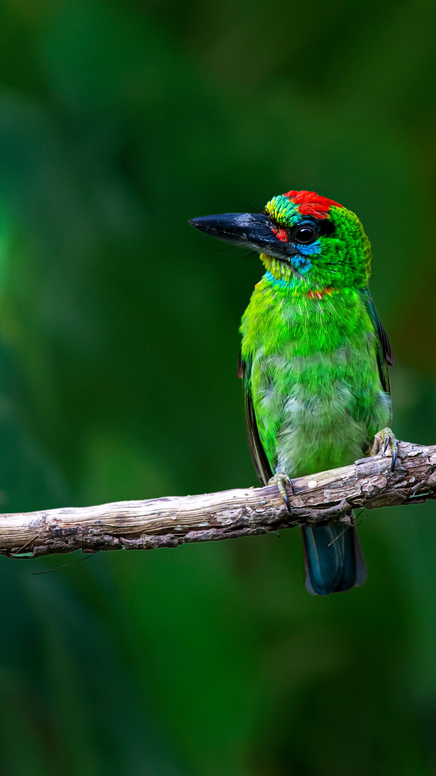 Megalaimidae Red Green Tropical Bird Wallpaper - 1440x2560