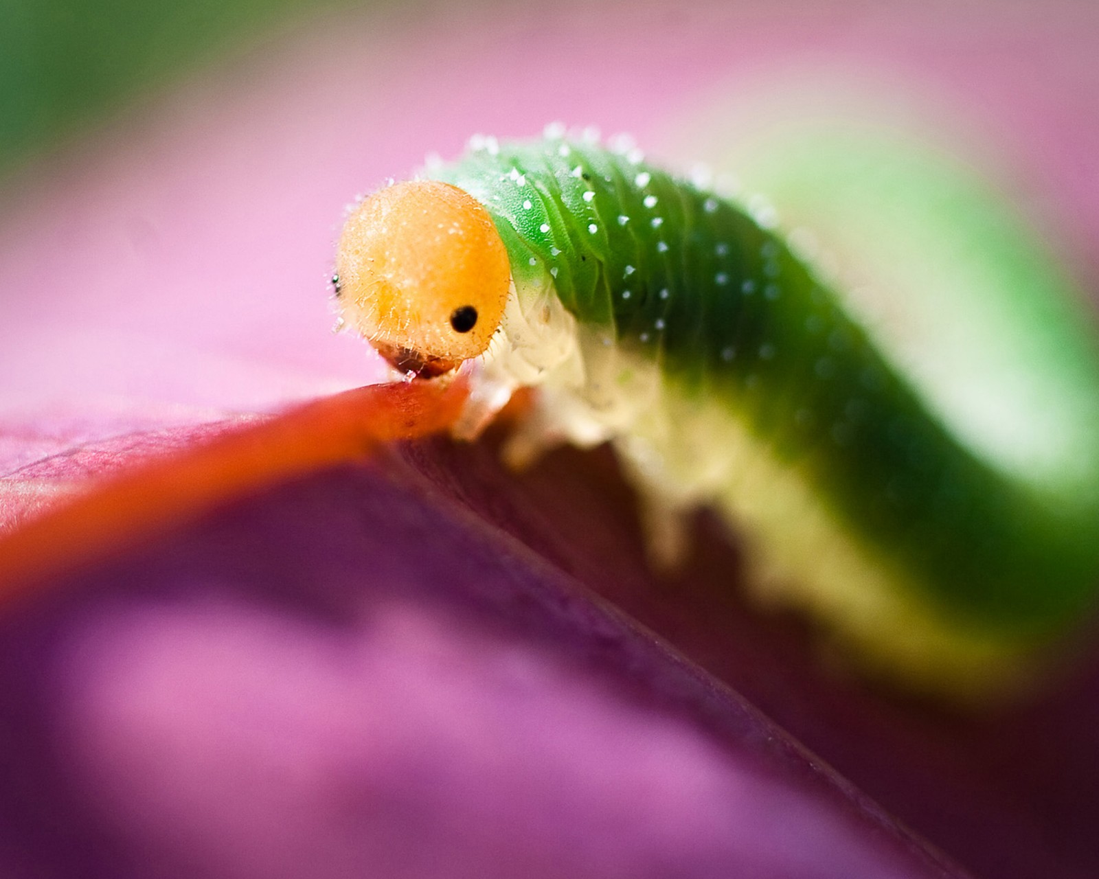 Caterpillar On Roses Macro Wallpaper - 1600x1280