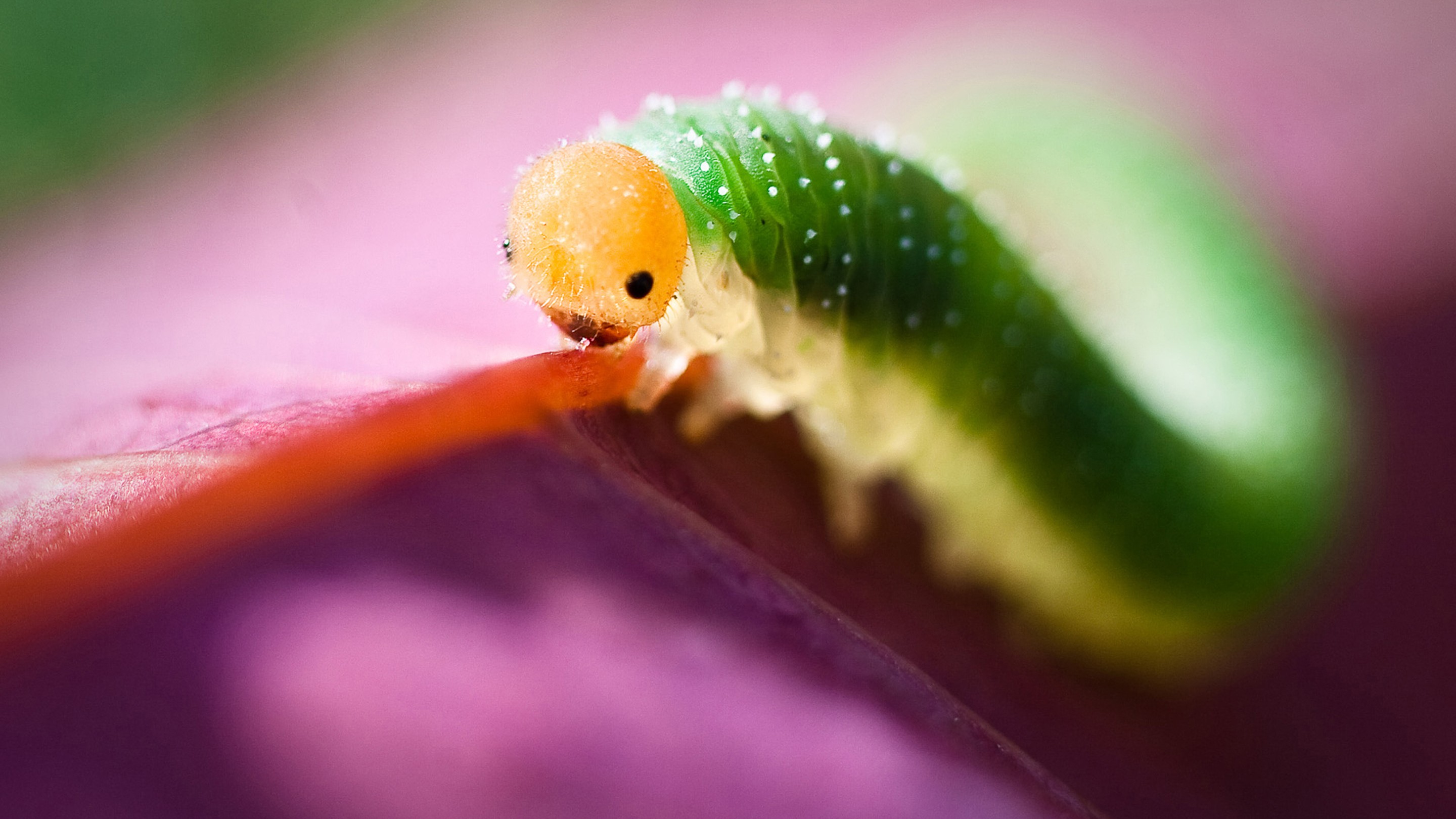Caterpillar On Roses Macro Wallpaper - 2880x1620