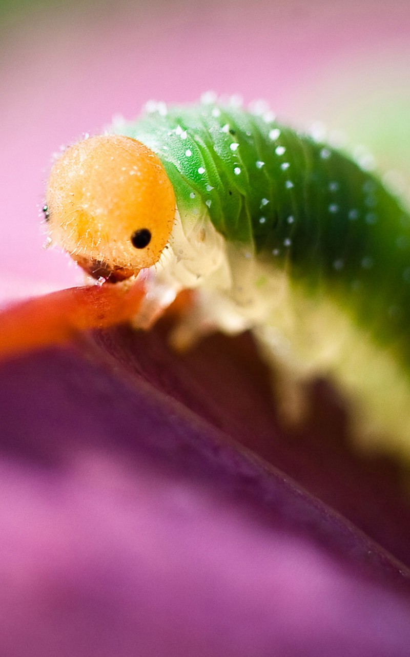 Caterpillar On Roses Macro Wallpaper - 800x1280