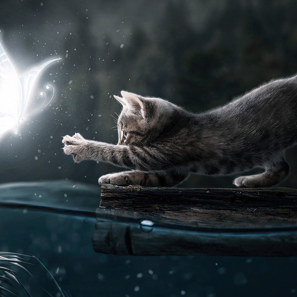 Angler Fish Butterfly Hunt Cat Wallpaper - 1024x1024