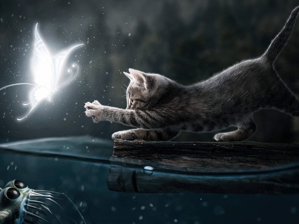 Angler Fish Butterfly Hunt Cat Wallpaper - 1024x768