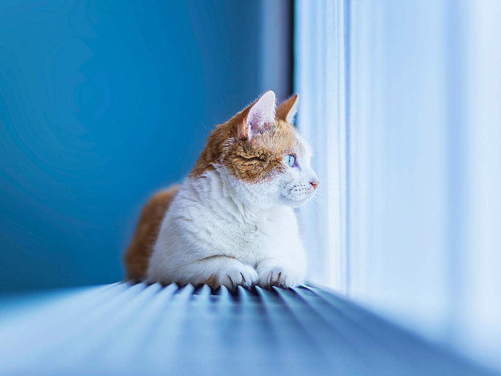 Cat Blue Window Attention Wallpaper - 1024x768