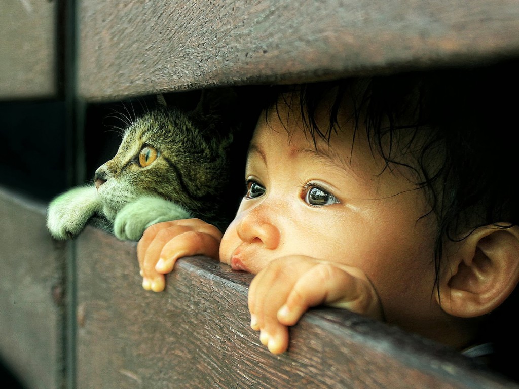 Cat Children Emotion Photo Wallpaper - 1024x768