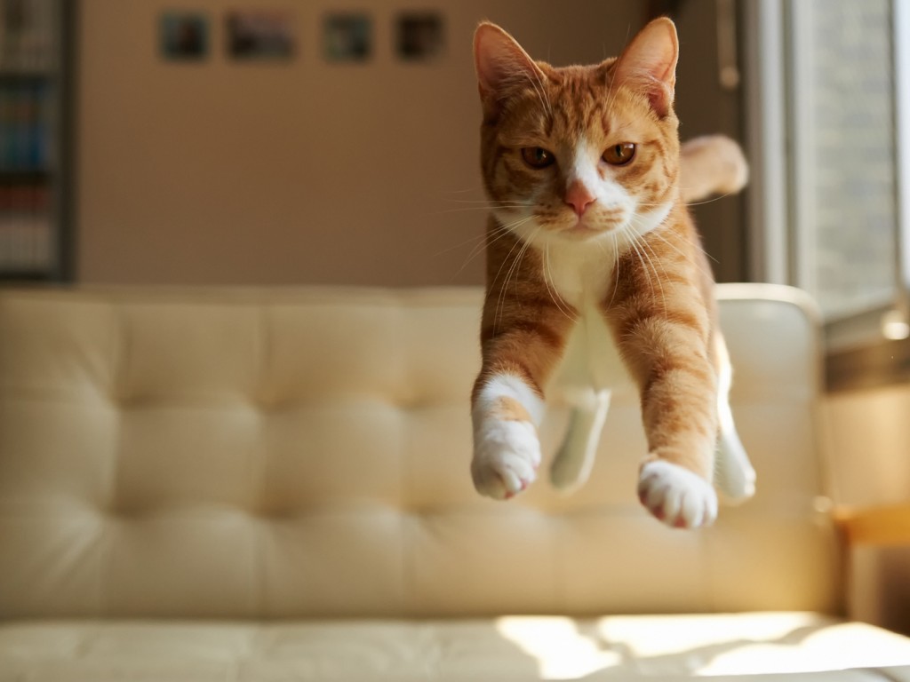 Confident Cat Bed Jump Wallpaper - 1024x768