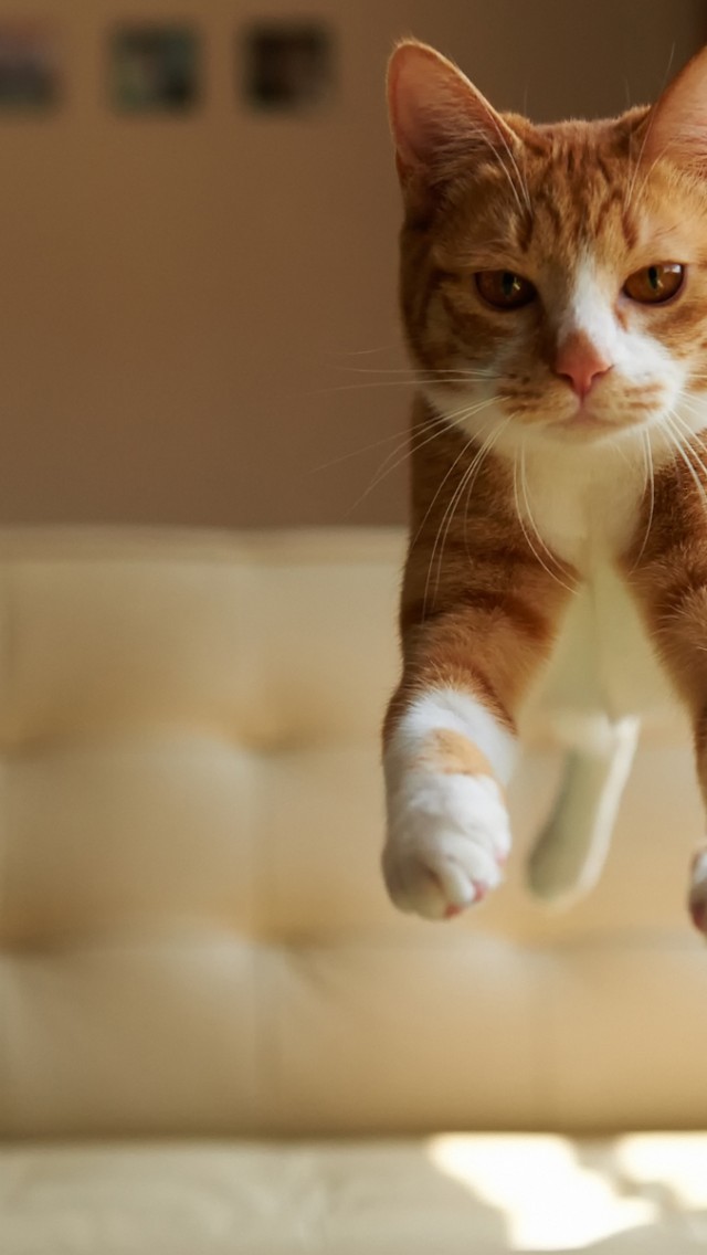 Confident Cat Bed Jump Wallpaper - 640x1136