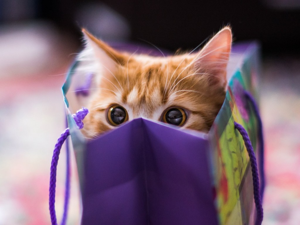 Cute Cat Gift Package Wallpaper - 1024x768
