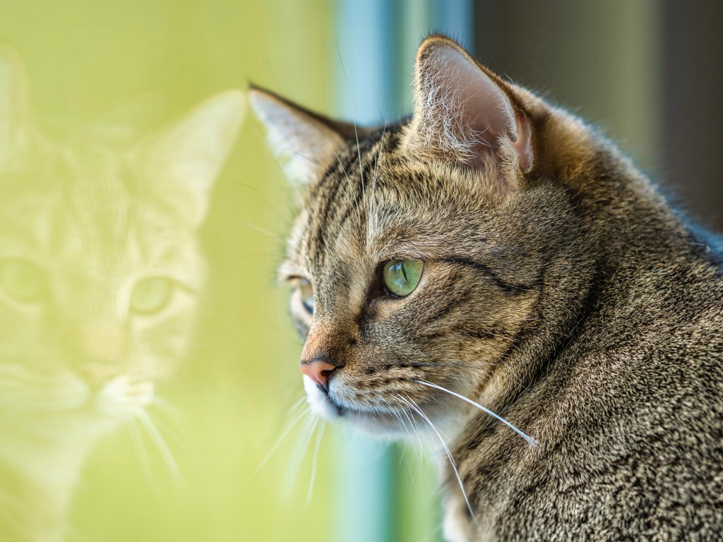 Shorthair Cat Window Reflection Wallpaper - 1024x768