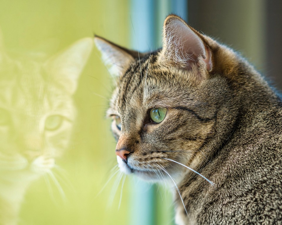 Shorthair Cat Window Reflection Wallpaper - 960x768