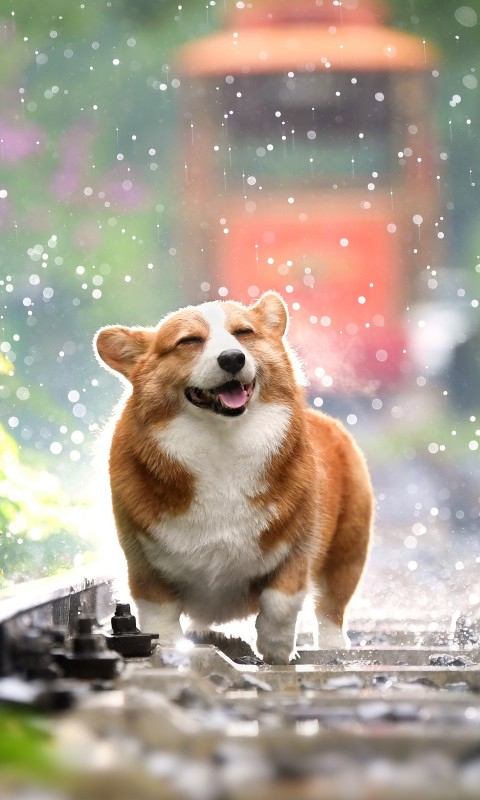 Corgi Happy Dog Rain Wallpaper - 480x800