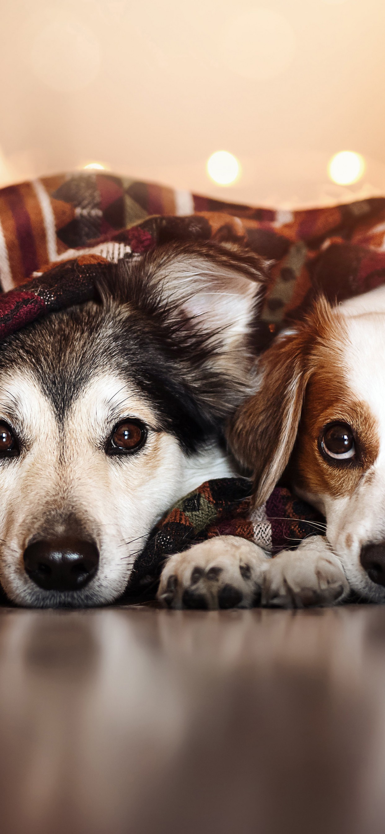 Dogs Brown Black White Bokeh Wallpaper - 1242x2688