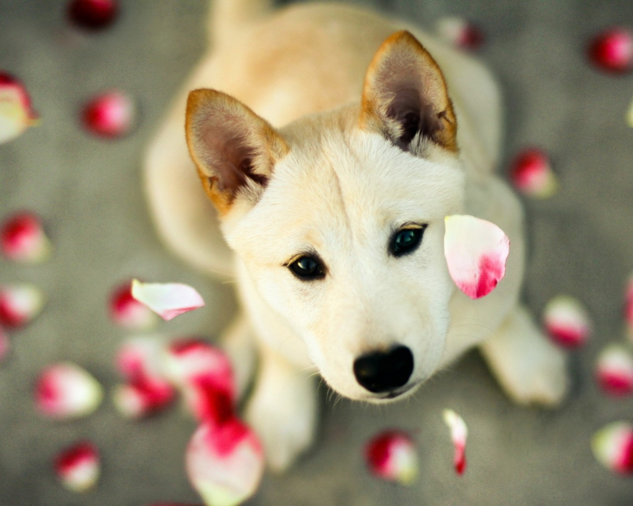 Shiba Inu Dog Red White Flower Petals Wallpaper - 1280x1024