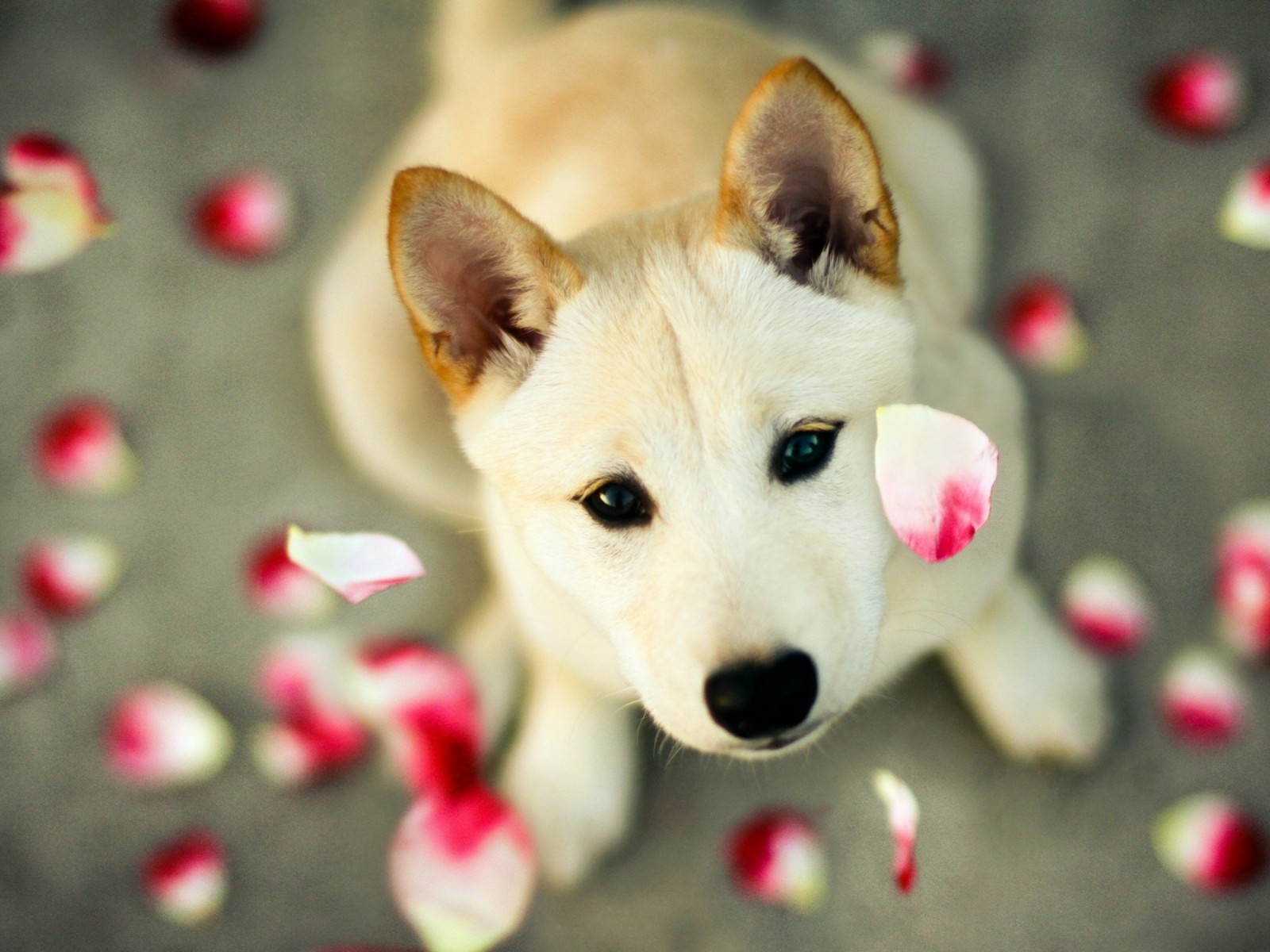 Shiba Inu Dog Red White Flower Petals Wallpaper - 1600x1200