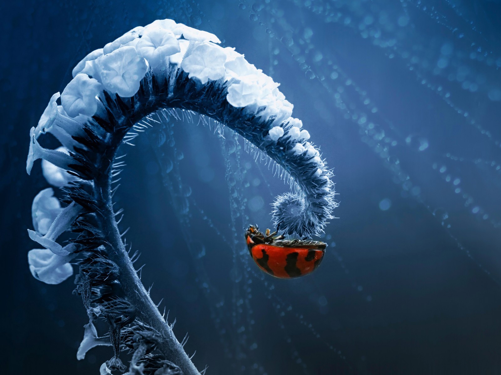 Ladybug Swirl White Plant Macro Wallpaper - 1600x1200