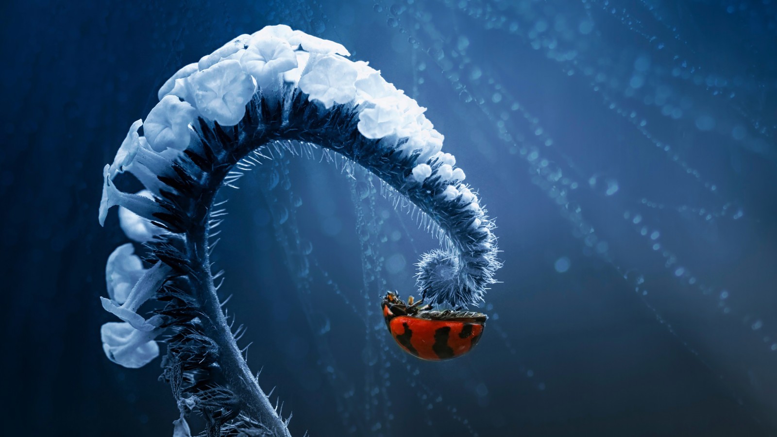 Ladybug Swirl White Plant Macro Wallpaper - 1600x900