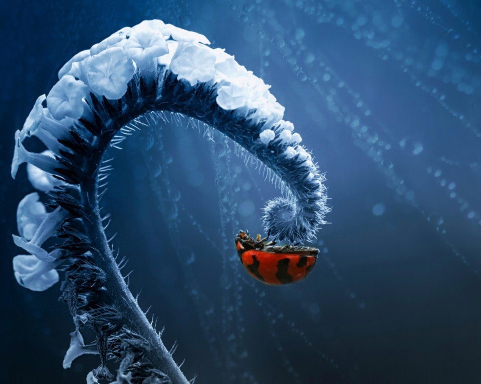 Ladybug Swirl White Plant Macro Wallpaper - 960x768
