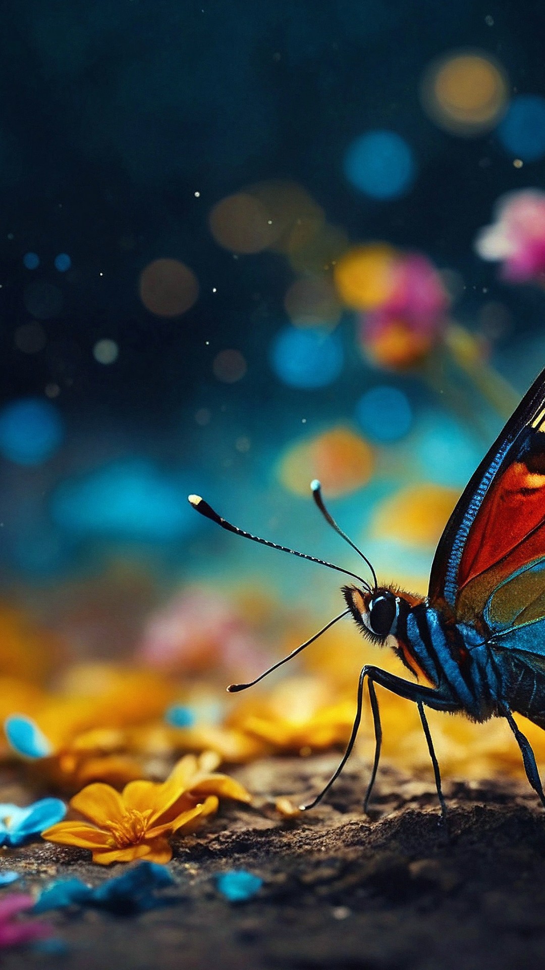 Butterfly Colorful Flower Field Wallpaper - 1080x1920