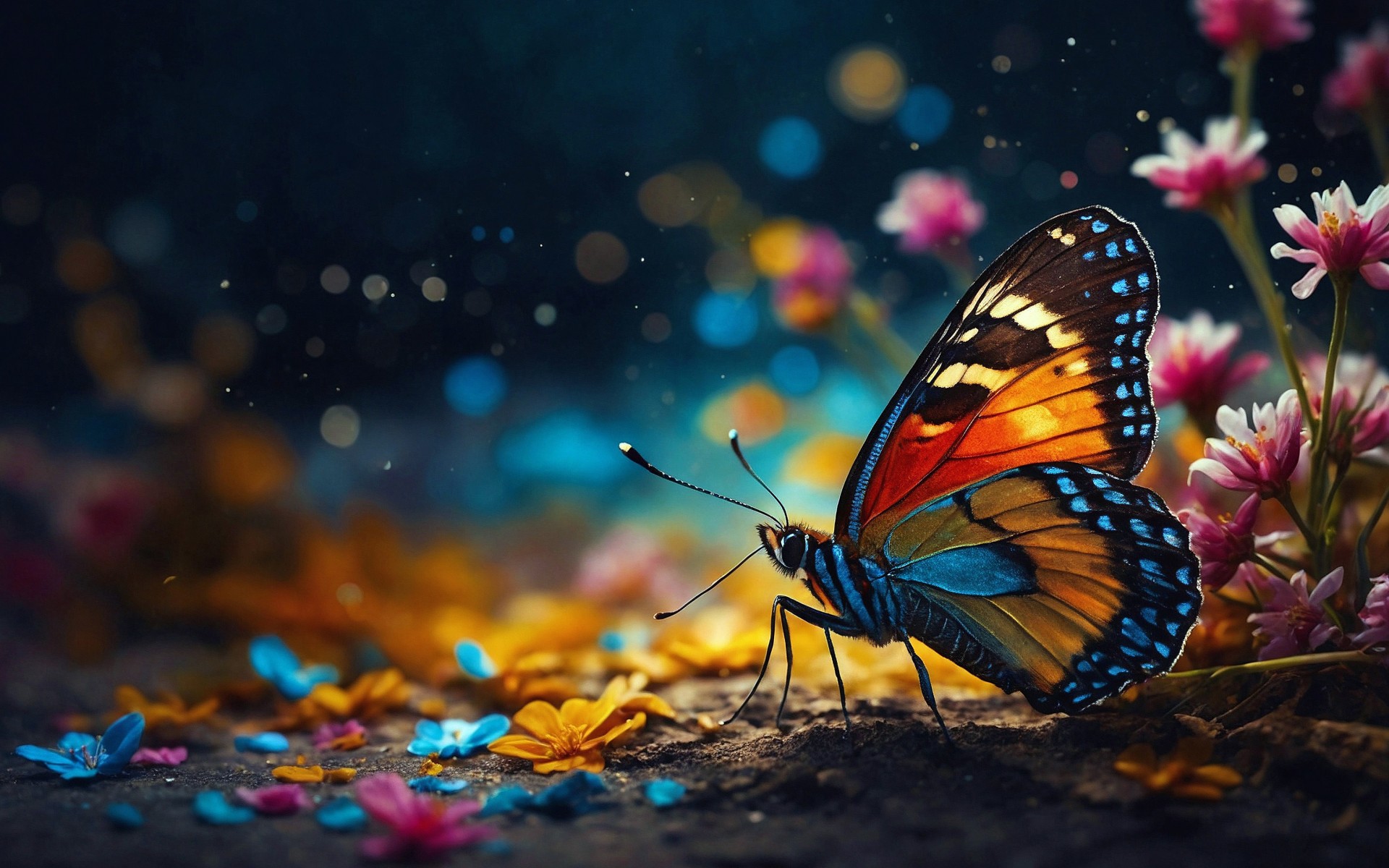Butterfly Colorful Flower Field Wallpaper - 1920x1200