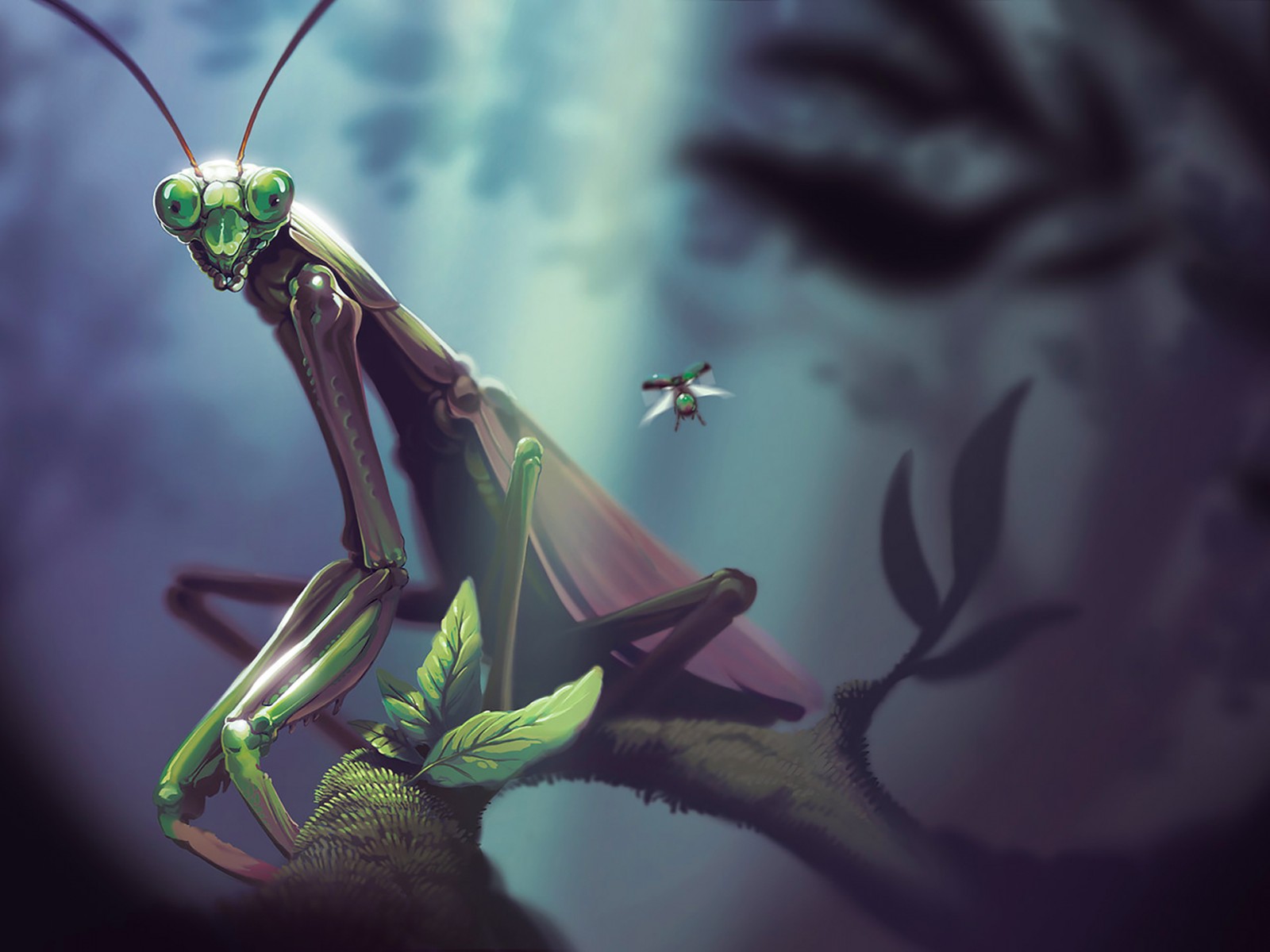 Praying Mantis Macro Illustration Wallpaper - 1600x1200