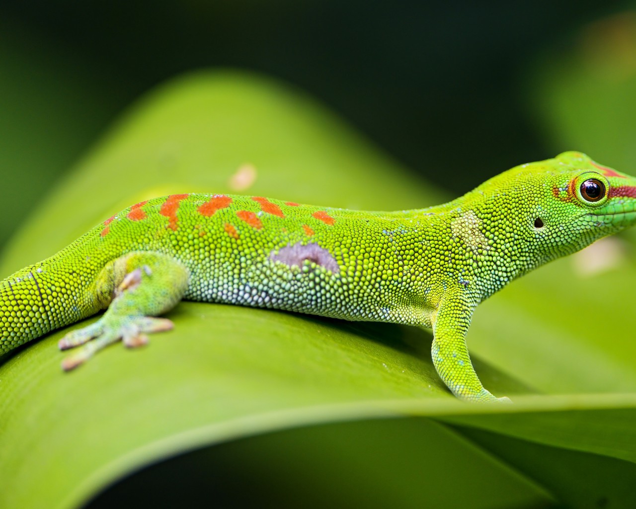 Green Gecko Leaf Macro Wallpaper - 1280x1024
