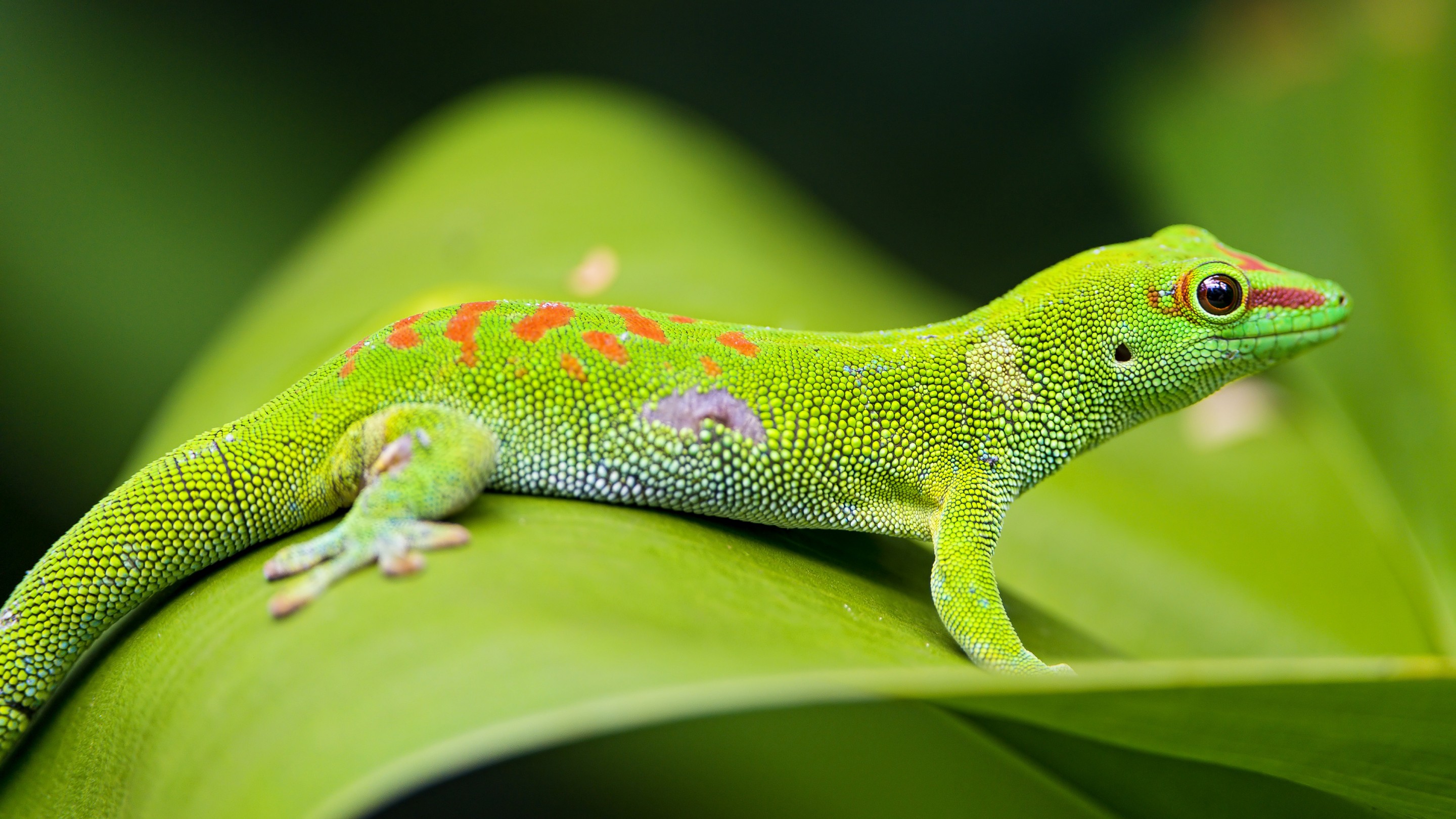 Green Gecko Leaf Macro Wallpaper - 2880x1620