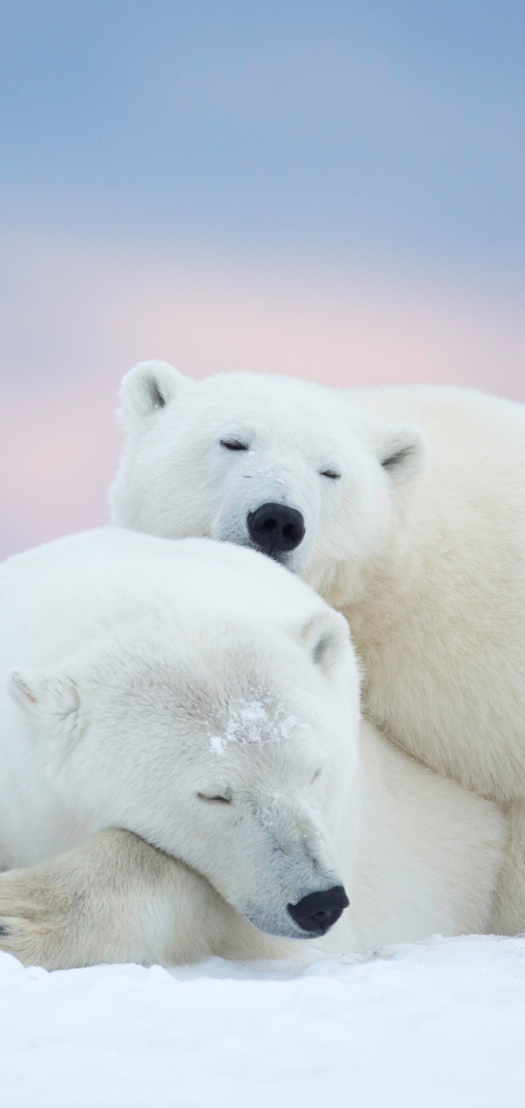 Sleeping Polar Bears Pink Sky Wallpaper - 1080x2280