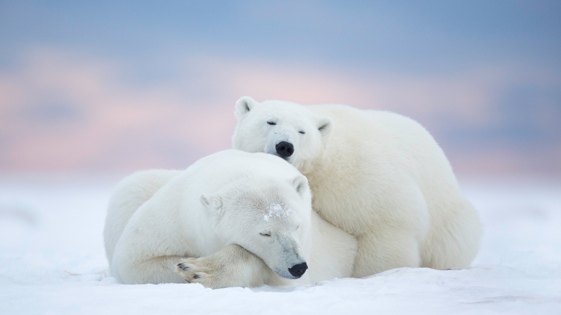 Sleeping Polar Bears Pink Sky Wallpaper - 1920x1080
