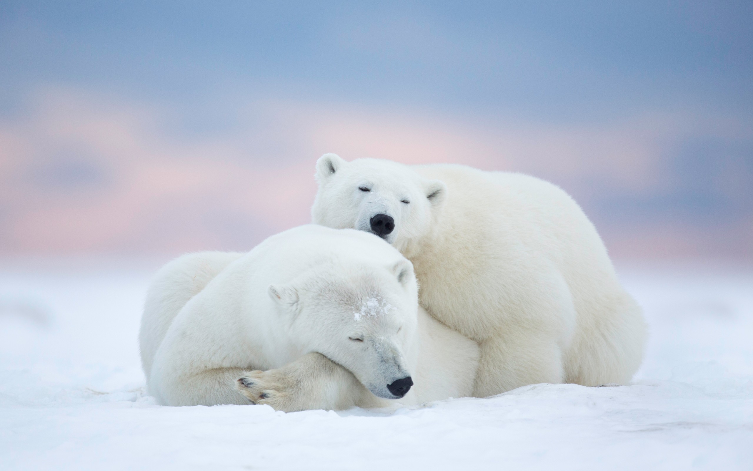 Sleeping Polar Bears Pink Sky Wallpaper - 2560x1600