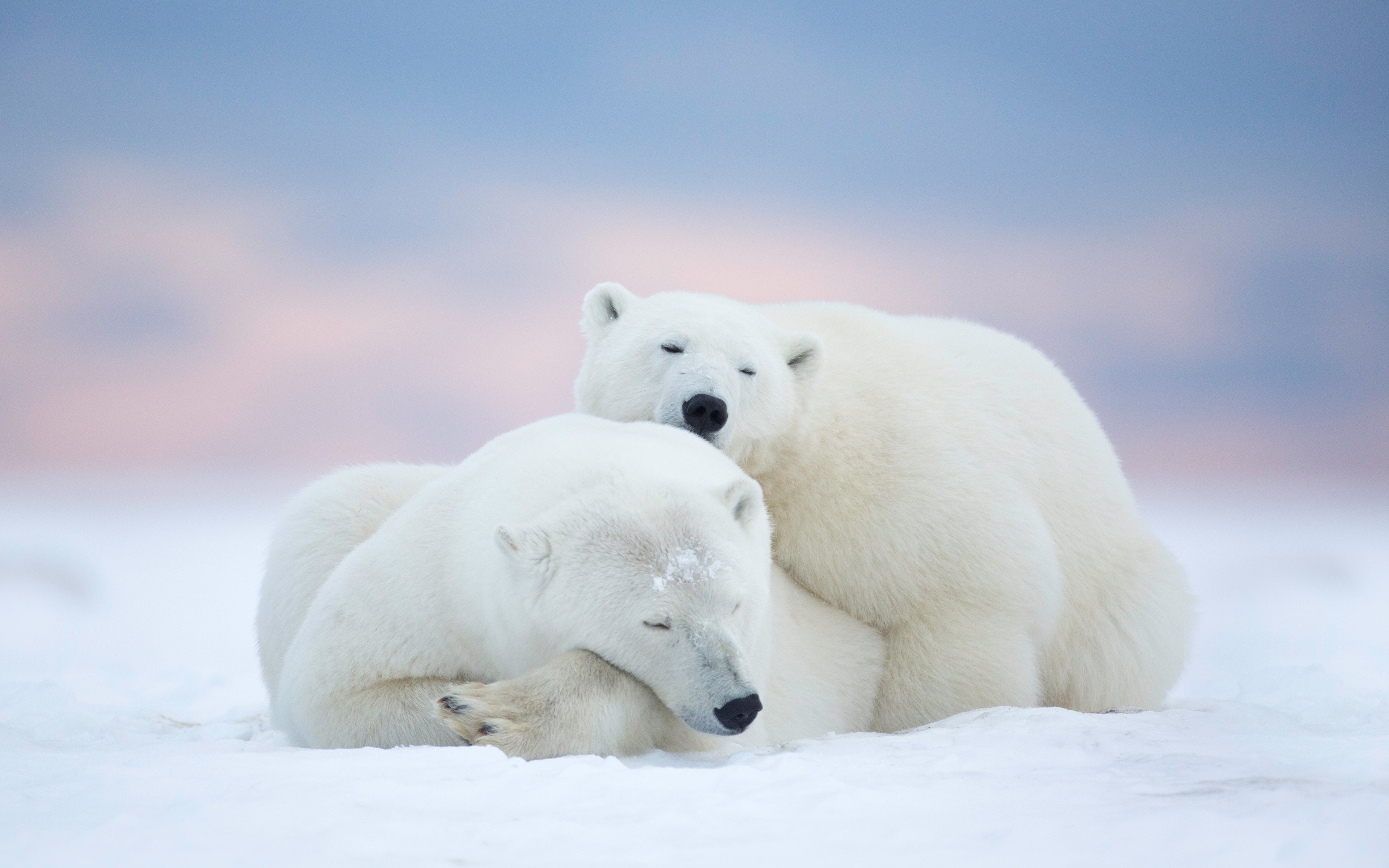 Sleeping Polar Bears Pink Sky Wallpaper - 3840x2400