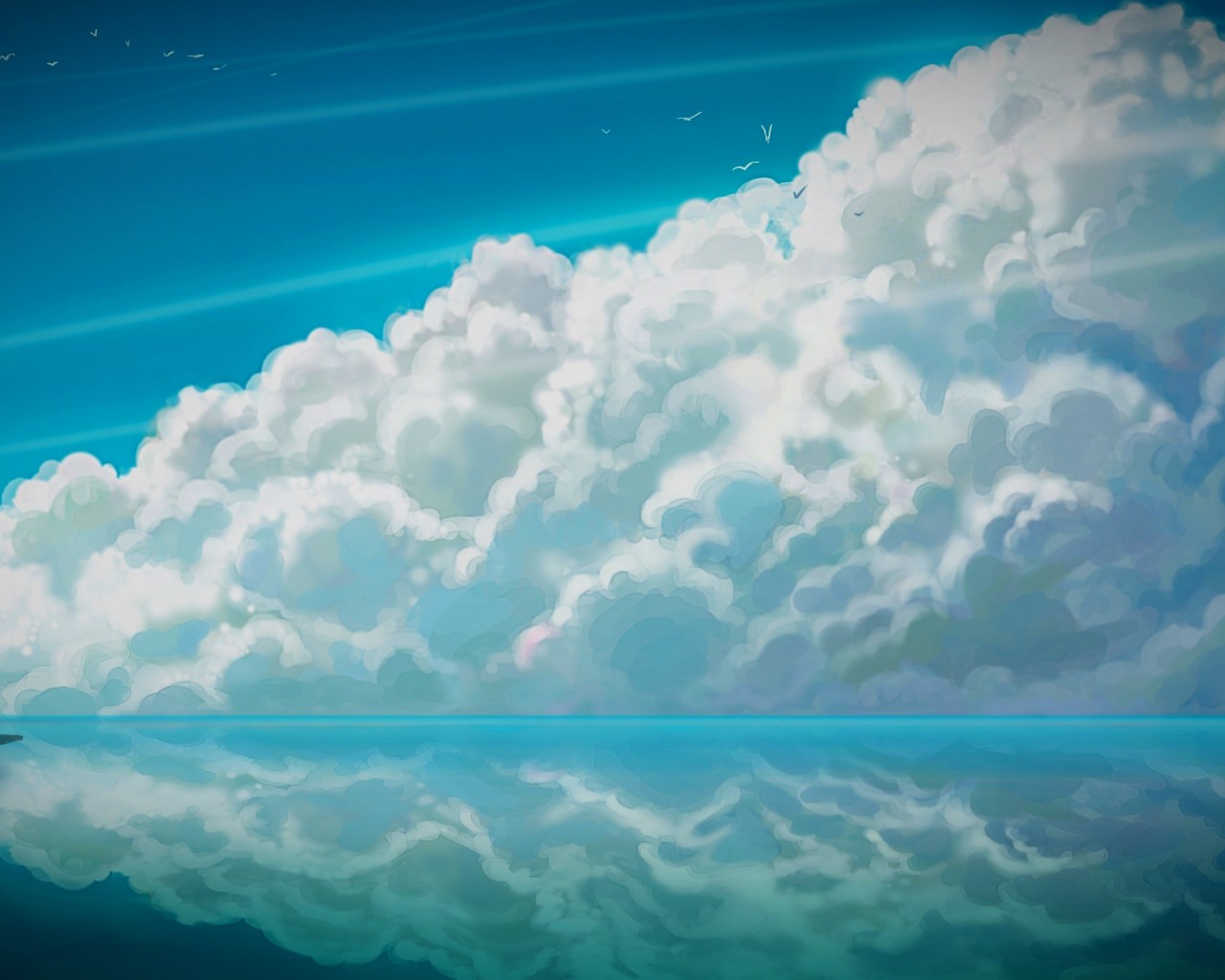 Anime Clouds Sky Reflection Art Wallpaper - 1280x1024