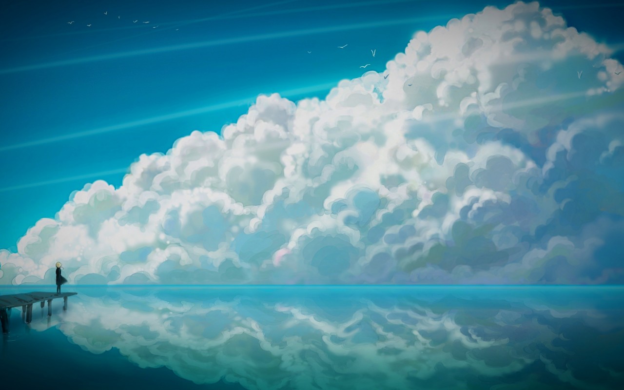 Anime Clouds Sky Reflection Art Wallpaper - 1280x800