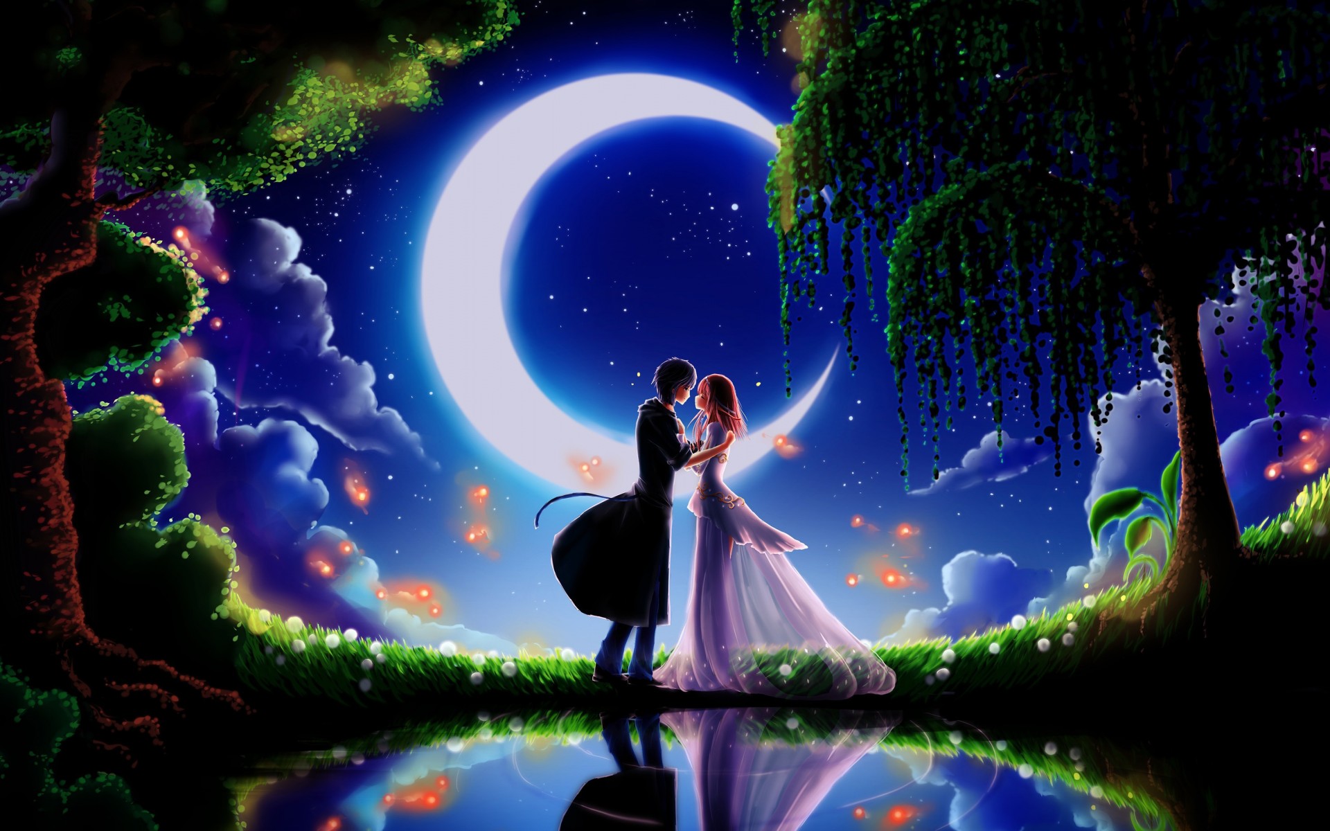 Anime Couple Love Night Moon Wallpaper - 1920x1200