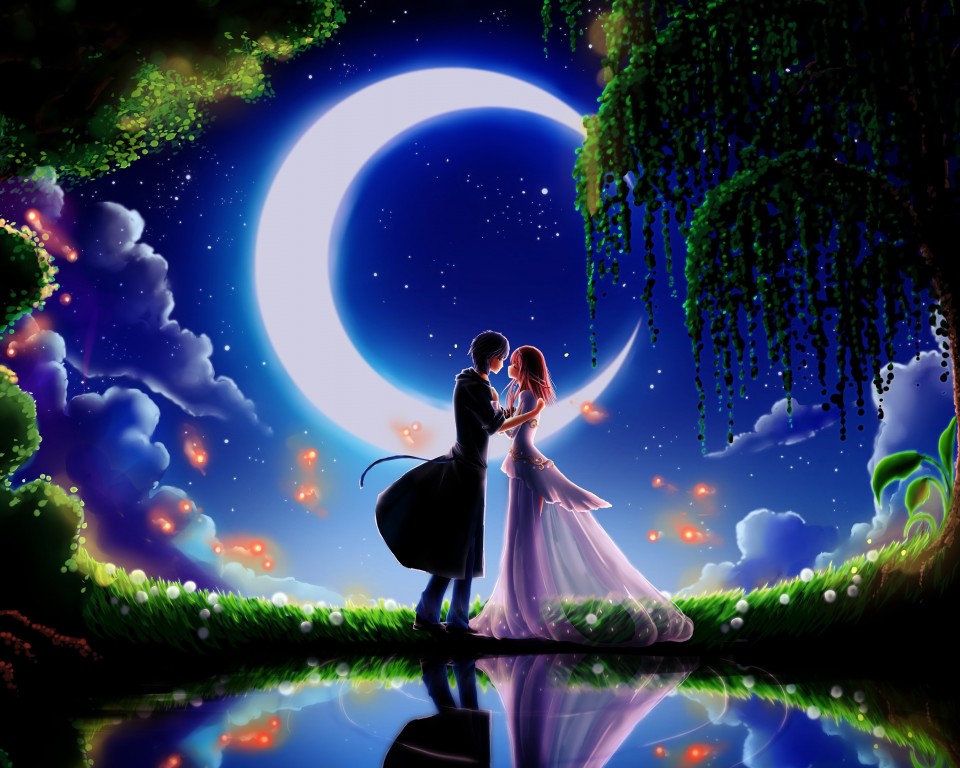 Anime Couple Love Night Moon Wallpaper - 960x768