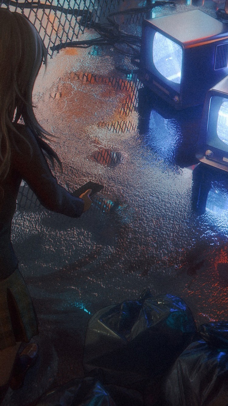 Anime Girl CRT Retro Monitor Scene Wallpaper - 750x1334