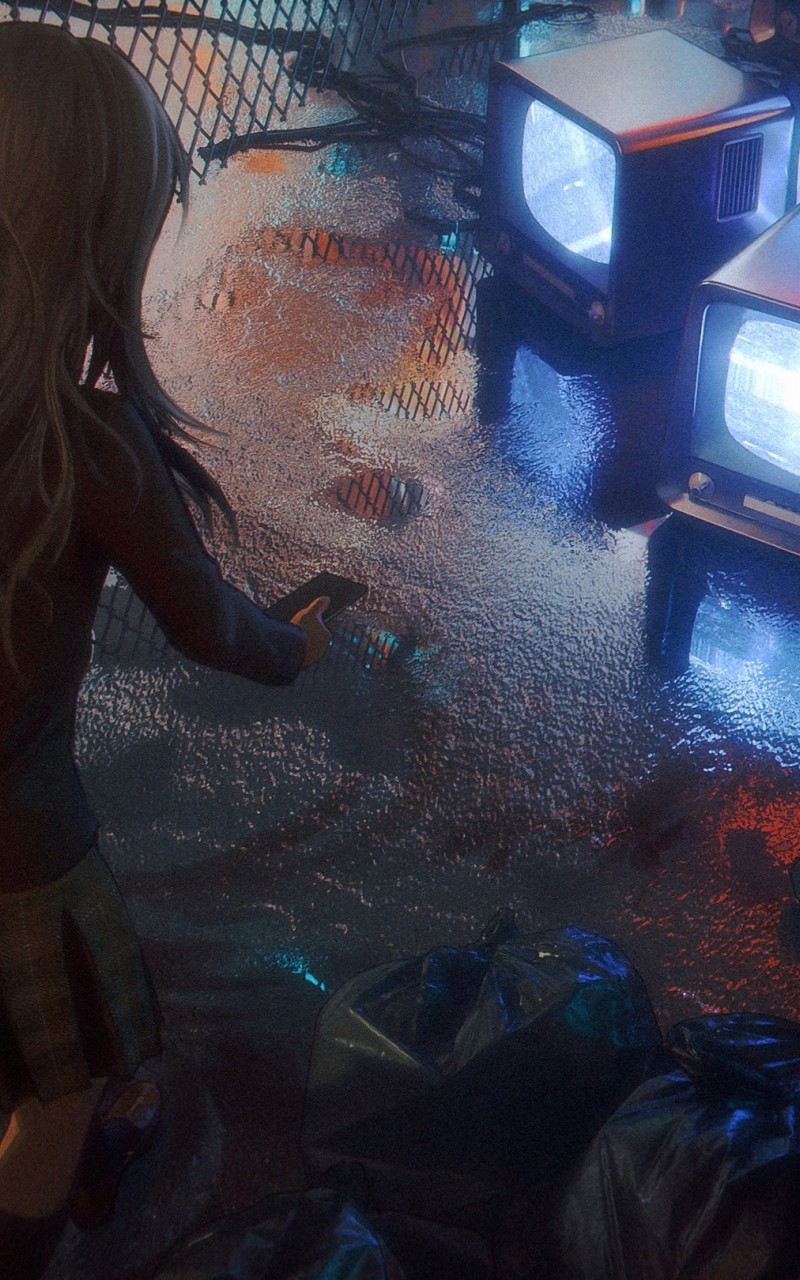 Anime Girl CRT Retro Monitor Scene Wallpaper - 800x1280