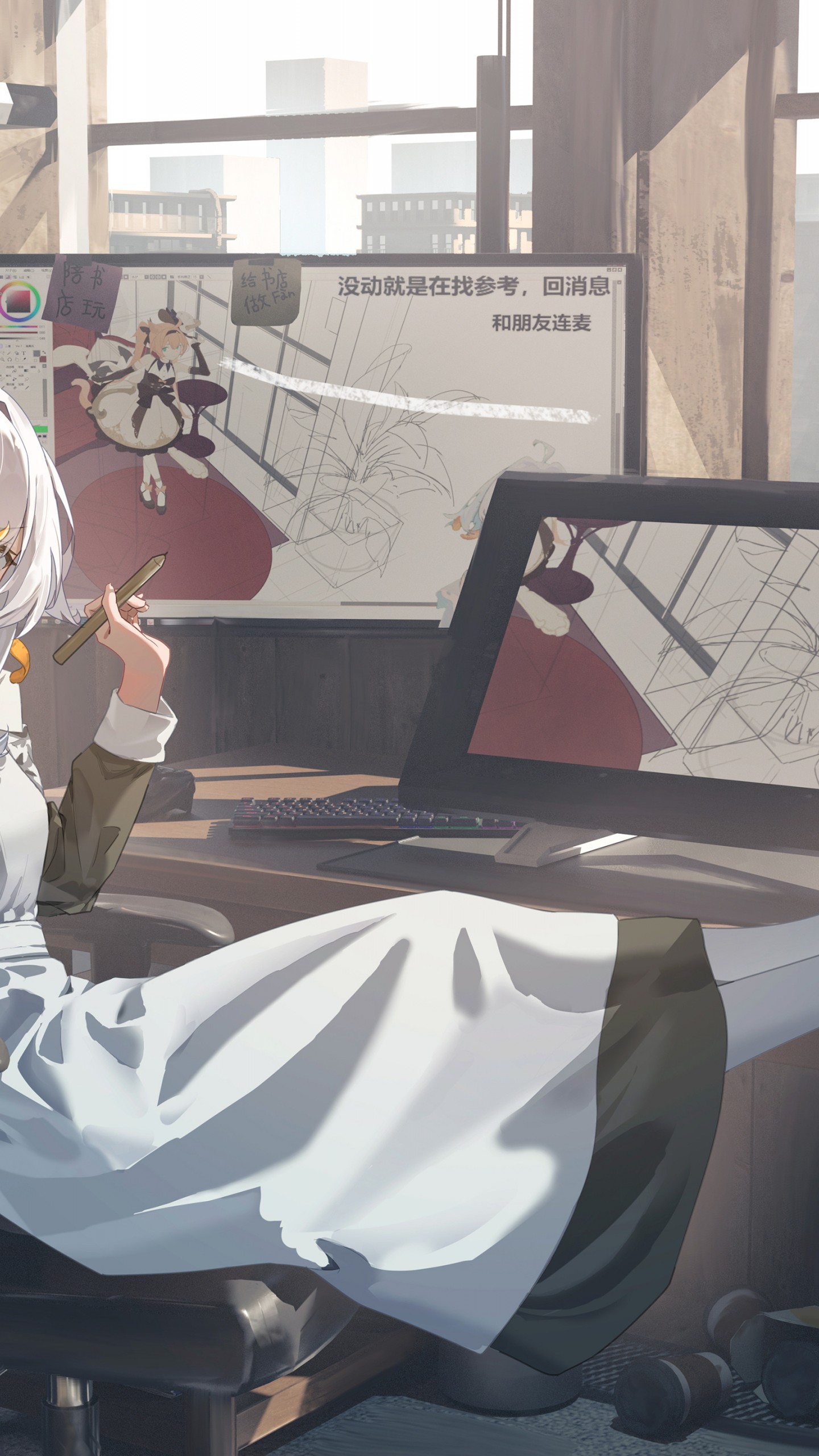 Anime Girl Drawing Background Scenery Wallpaper - 1440x2560