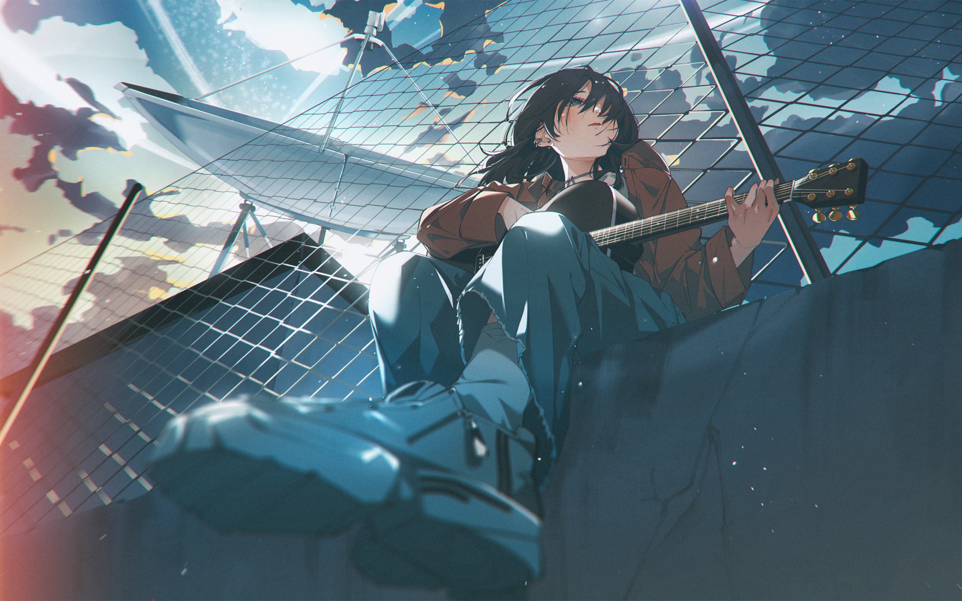 Anime Girl Guitar Music Art Wallpaper - 1920x1200