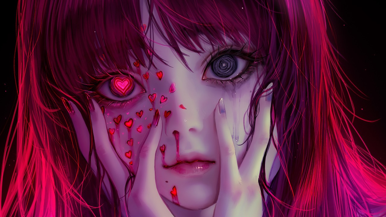 Anime Girl Heart Eyes Digital Art Wallpaper - 1280x720