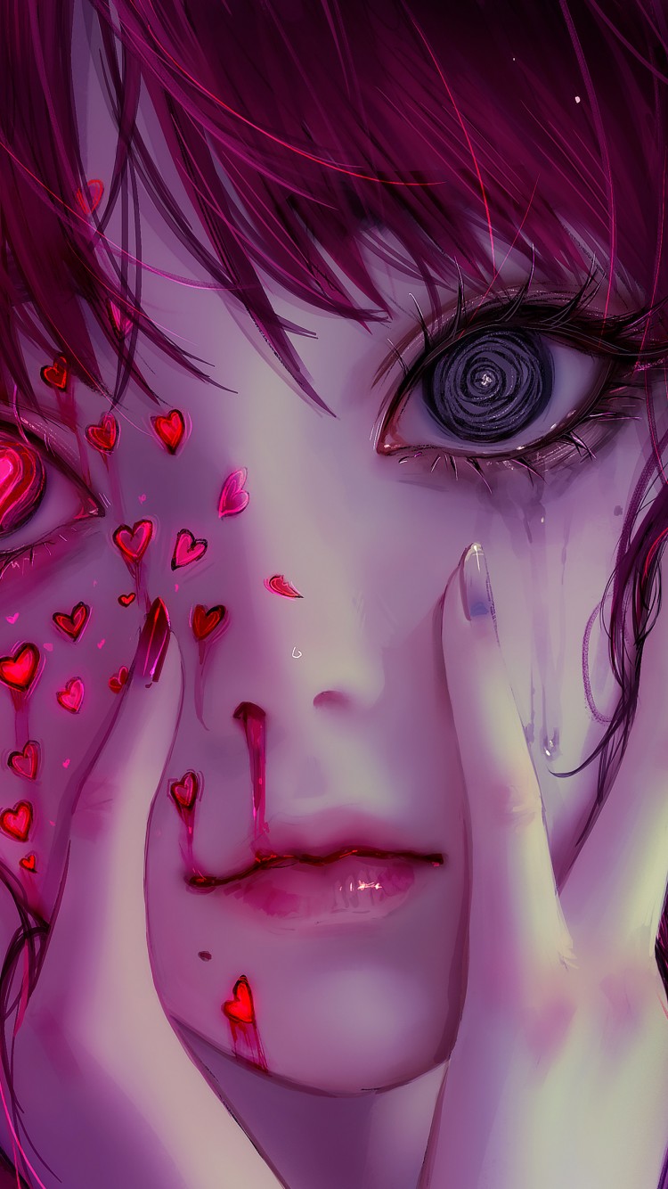 Anime Girl Heart Eyes Digital Art Wallpaper - 750x1334