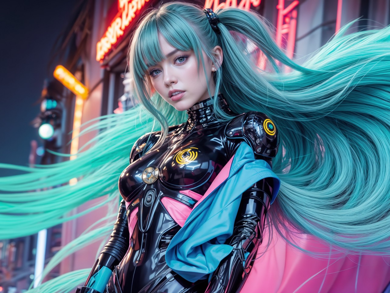 Anime Girl Long Blue Hair Ai Art Wallpaper - 1280x960
