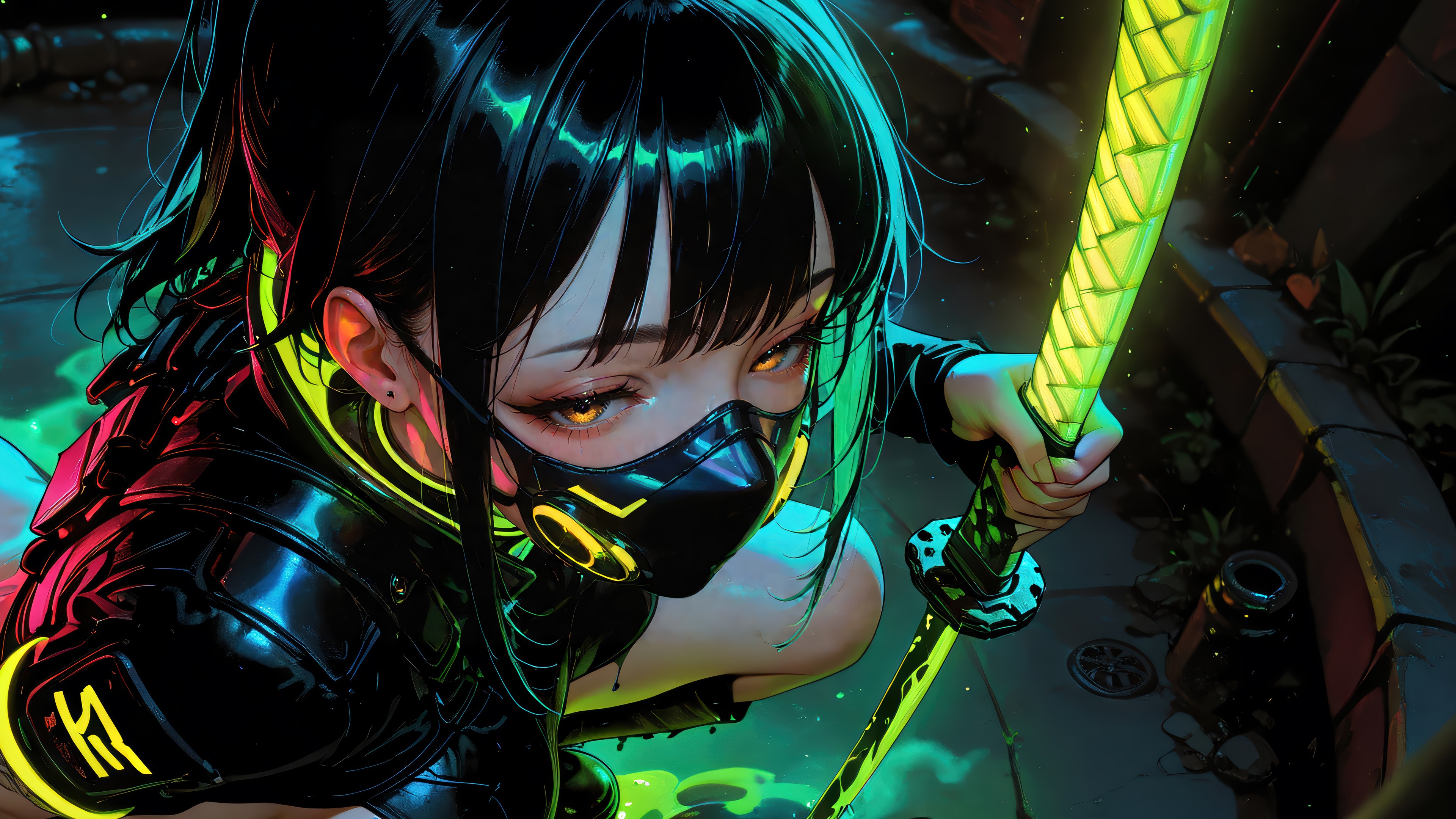 Anime Girl Mask Katana Sword Ai Art Wallpaper