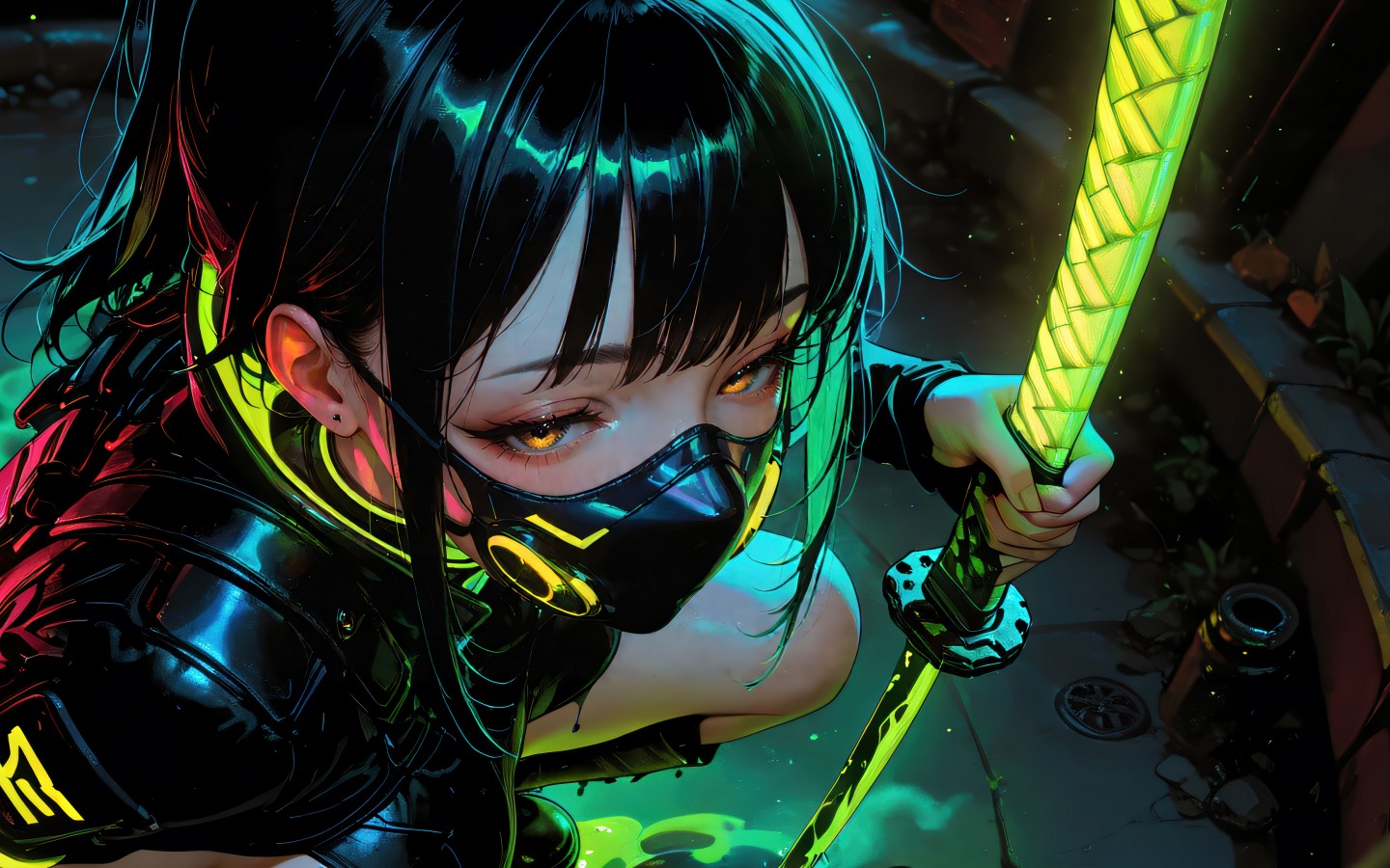 Anime Girl Mask Katana Sword Ai Art Wallpaper - 1440x900