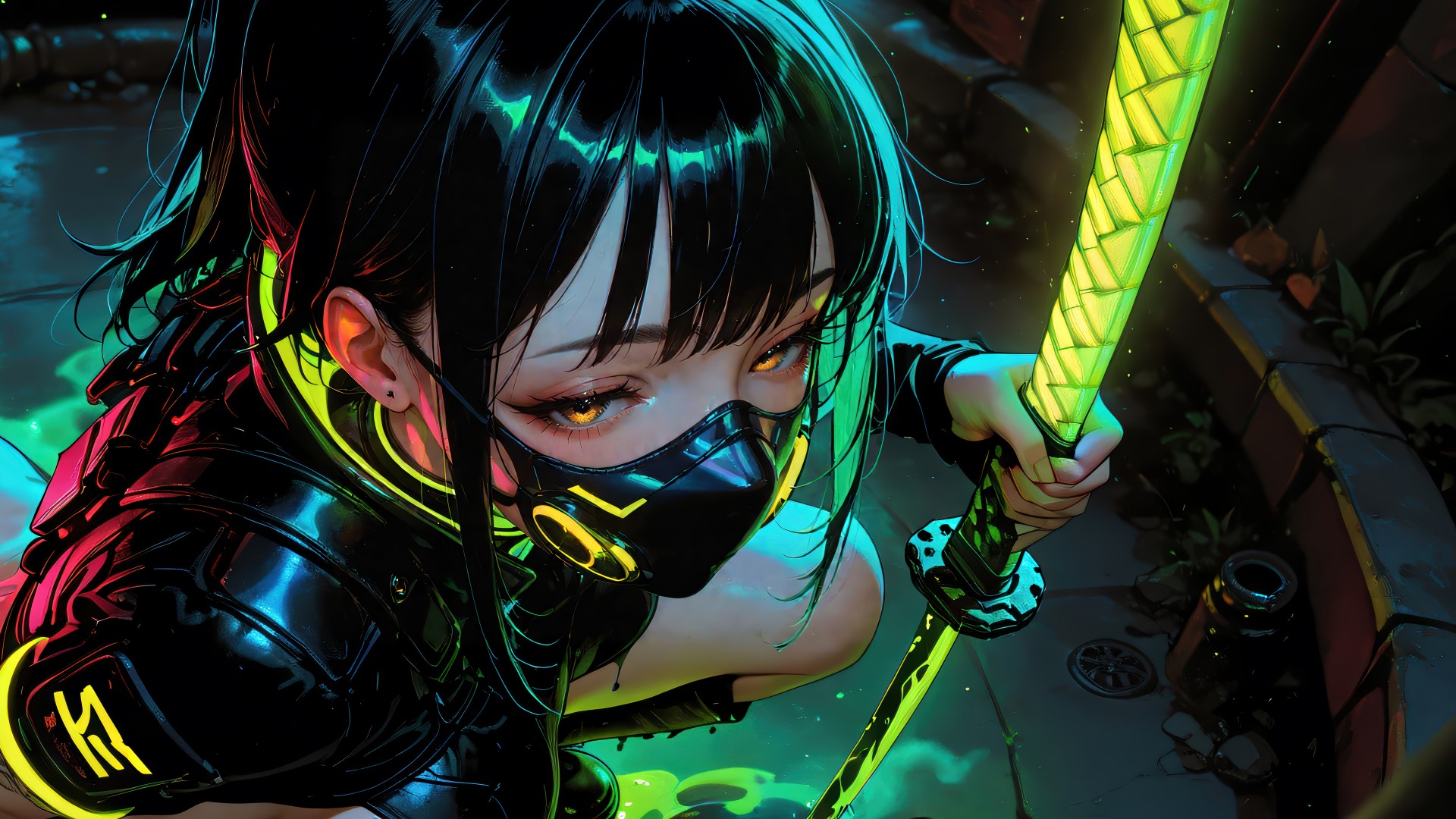 Anime Girl Mask Katana Sword Ai Art Wallpaper - 1920x1080