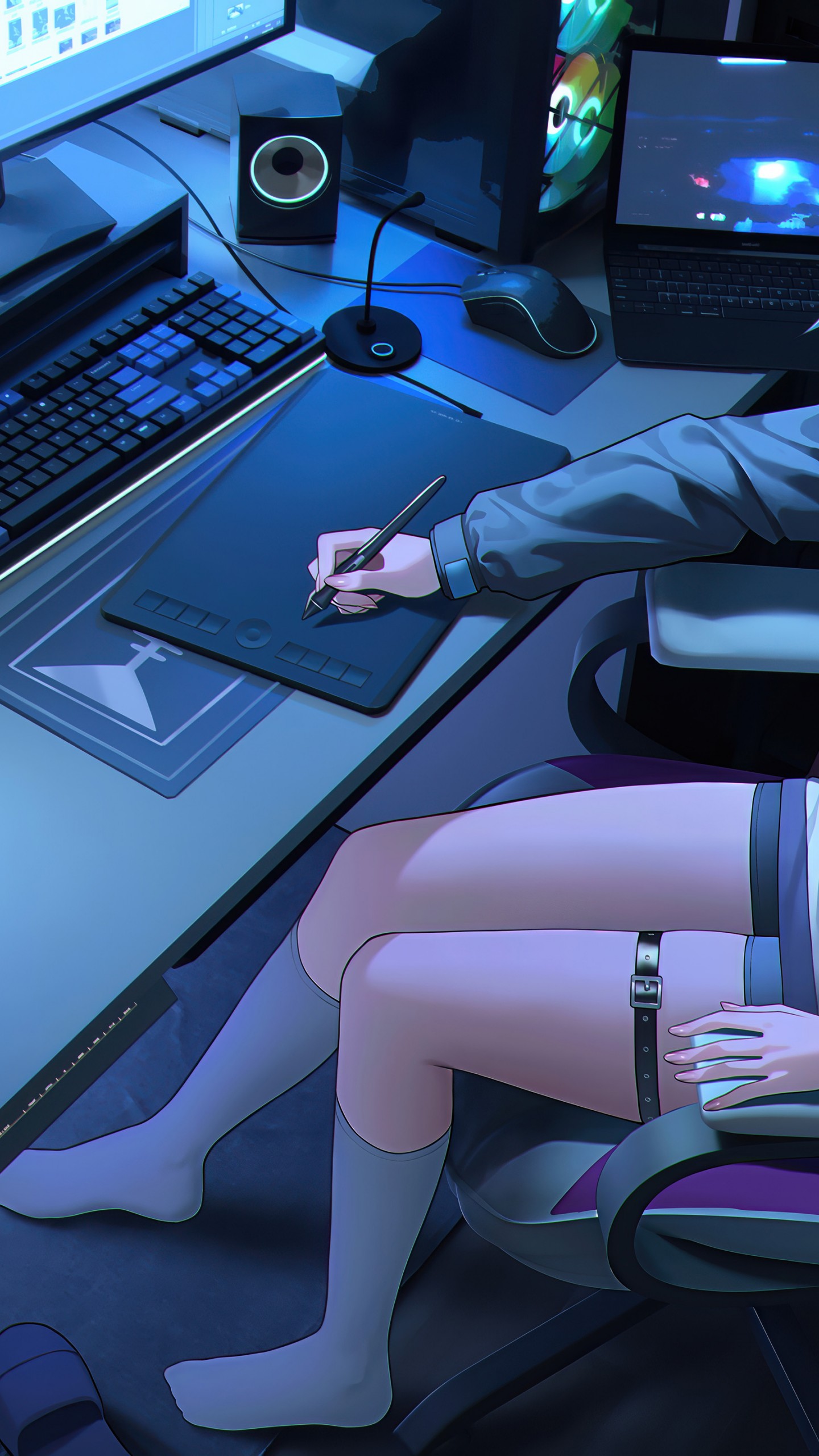 Anime Girl Pc Room Concept Art Wallpaper - 1440x2560