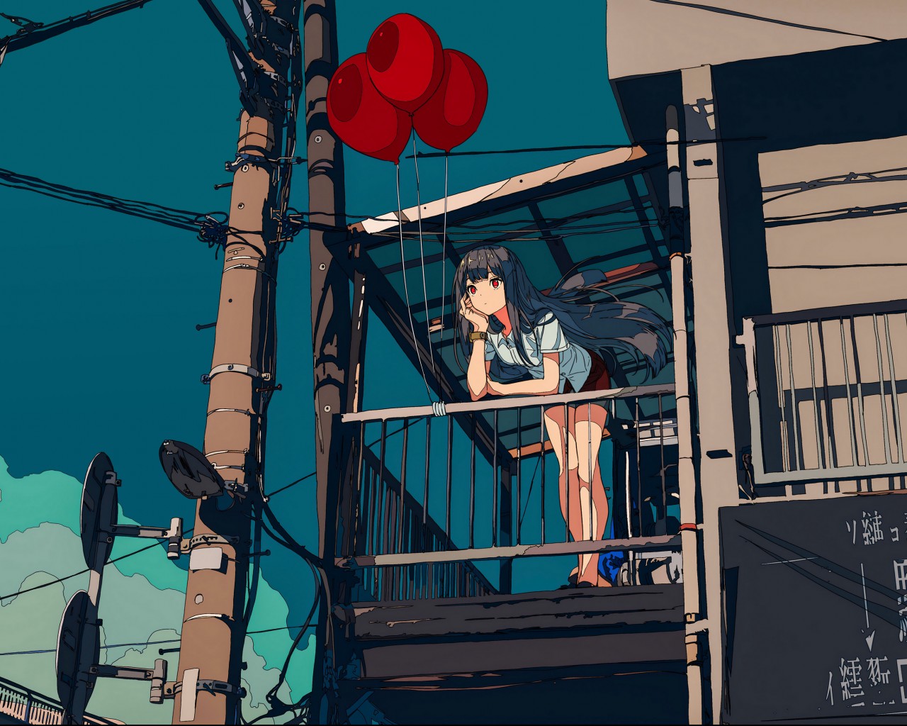 Anime Girl Red Balloons Balcony Wallpaper - 1280x1024